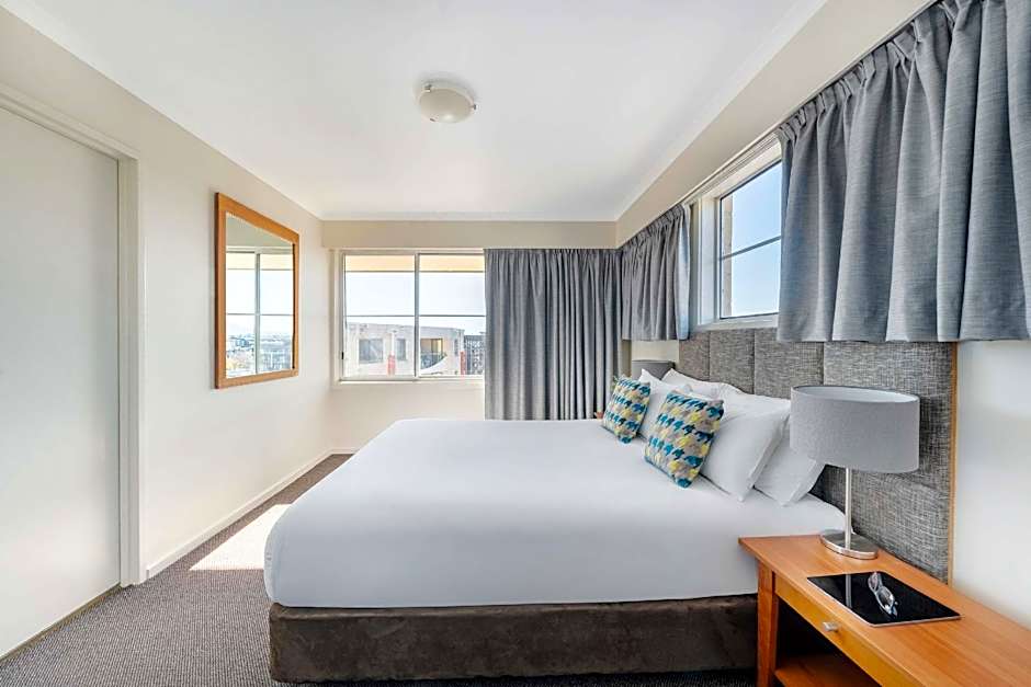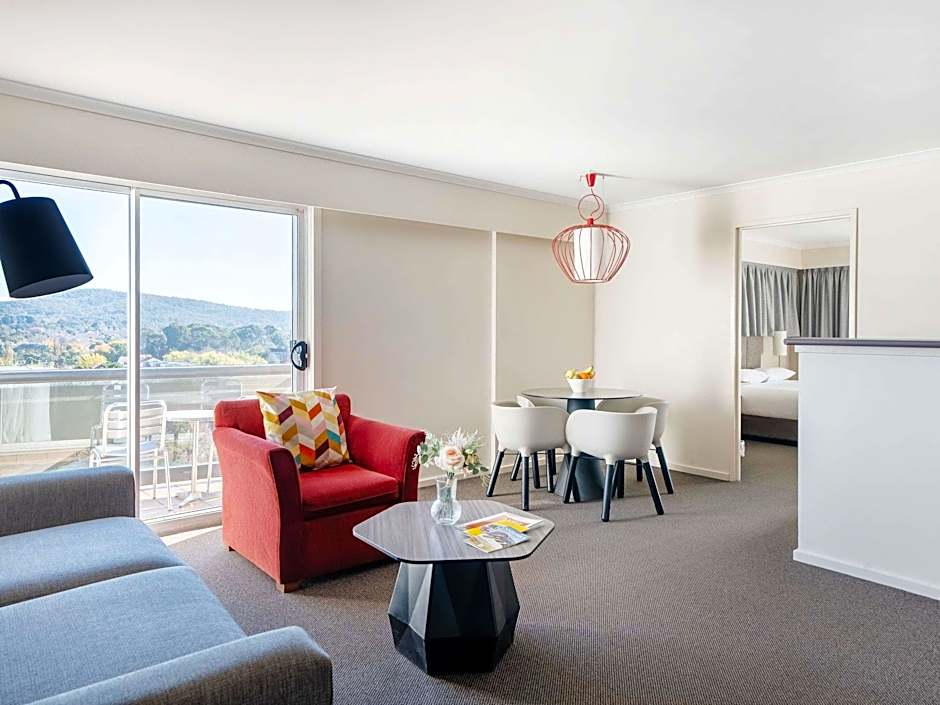 Located on the higher floors of the property, this spacious apartment features a large balcony with views of Canberra. It has a fully equipped kitchen, laundry and a separate lounge and dining area.